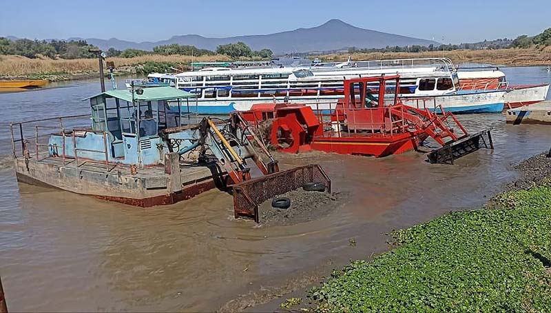 La Secretaría de Comunicaciones y Obras Públicas (SCOP), la Comisión Estatal de Pesca (Compesca) y la Secretaría de Marina (Semar) avanzan también en la limpieza del lago con maquinaria especializada de los muelles de Ihuatzio y Jarácuaro, mejorando el flujo y oxigenación del agua.