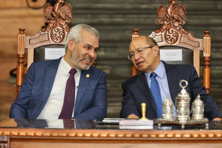 Durante el acto, el mandatario refirió que se va a trabajar la reforma judicial de manera conjunta con diálogo y encuentro, con lo cual, se tendrá un mejor Poder Judicial para Michoacán.