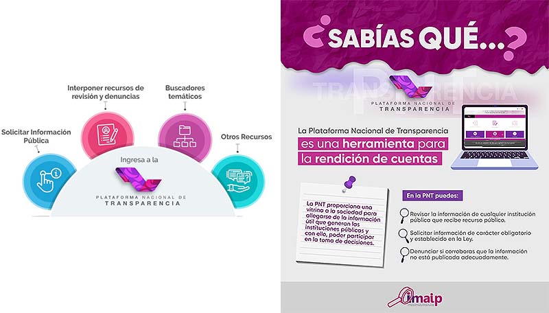 Morelia, Michoacán; viernes 30 de agosto de 2024.-La Plataforma Nacional de Transparencia (PNT) es la herramienta digital con la que la ciudadanía puede acceder a datos relevantes y solicitar información pública de manera sencilla y efectiva que generan las más de 7,000 instituciones de gobierno y otros sujetos obligados de cumplir las leyes de transparencia, como los sindicatos o los fideicomisos.