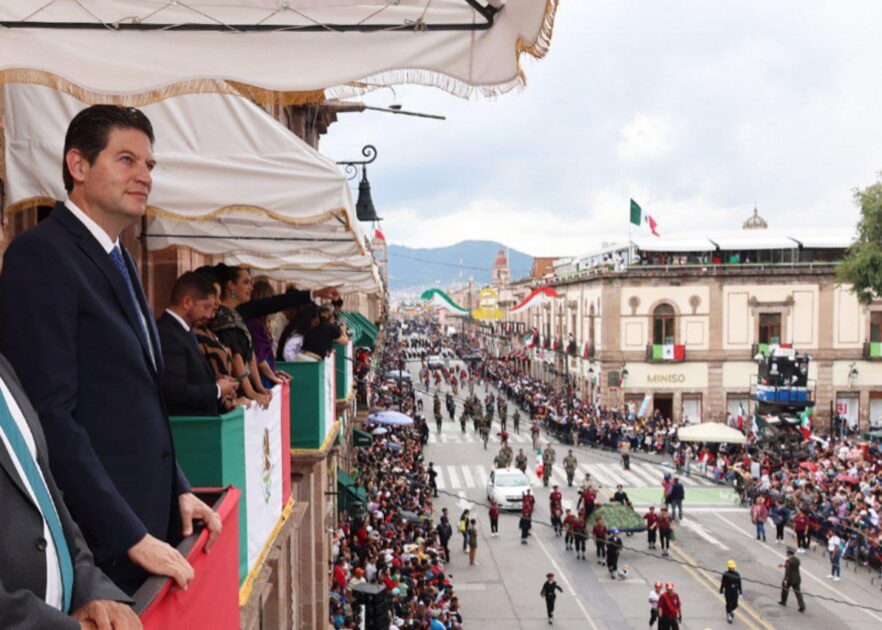 Posteriormente, el Alcalde, Alfonso Martínez, subió al balcón de Palacio de Gobierno para disfrutar del recorrido integrado por las fuerzas armadas, así como instituciones educativas, rescate y salvamento.