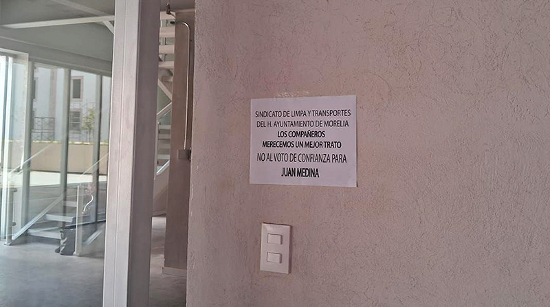 Por esta razón, miembros del sindicato realizaron protesta pacífica dentro de diferentes instalaciones municipales colocando letreros, exhibiendo inconformidad con Medina Ramírez y algunos miembros del comité.