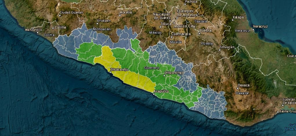 Se emitió la alerta azul para los municipios de Aguililla, Apatzingán, Aquila, Buenavista, Carácuaro, Coahuayana, Coalcomán, Chinicuila, Churumuco, La Huacana, Huetamo, Múgica, Nocupétaro, Parácuaro, San Lucas, Tepalcatepec y Tiquicheo; y la verde para Arteaga, Lázaro Cárdenas y Tumbiscatío.