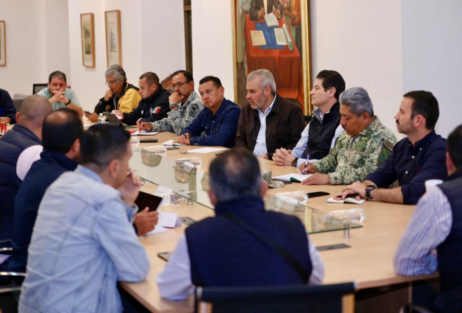 Morelia, Michoacán, 28 de septiembre de 2024.- Tras la reunión para el seguimiento de las contingencias ocasionadas por las lluvias en Morelia, la cual fue encabezada por el gobernador Alfredo Ramírez Bedolla, el presidente municipal de Morelia, Alfonso Martínez Alcázar, mandos de la Sedena y la Guardia Nacional, así como la dirección de Conagua en la entidad, se acordó que habrá monitoreo permanente del desfogue de la presa de Cointzio, de niveles de ríos y drenes y, que el C5-Sitec será el Centro de Mando Único para la coordinación y establecimiento de acciones específicas de auxilio a la población en caso de requerirse.