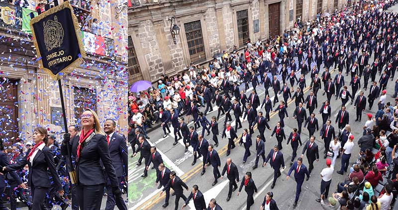 • La rectora Yarabí Ávila encabezó el contingente de la Universidad Michoacana en el desfile cívico-militar del 30 de septiembre.