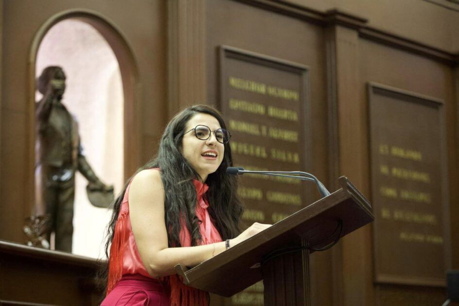 Morelia, Michoacán, a 03 de octubre de 2024.- En una emotiva sesión del Congreso del Estado de Michoacán, la diputada local de Morena, Giulianna Bugarini Torres, se subió a la tribuna para dedicar un mensaje de despedida al ex presidente Andrés Manuel López Obrador, a nombre de la bancada de Morena.