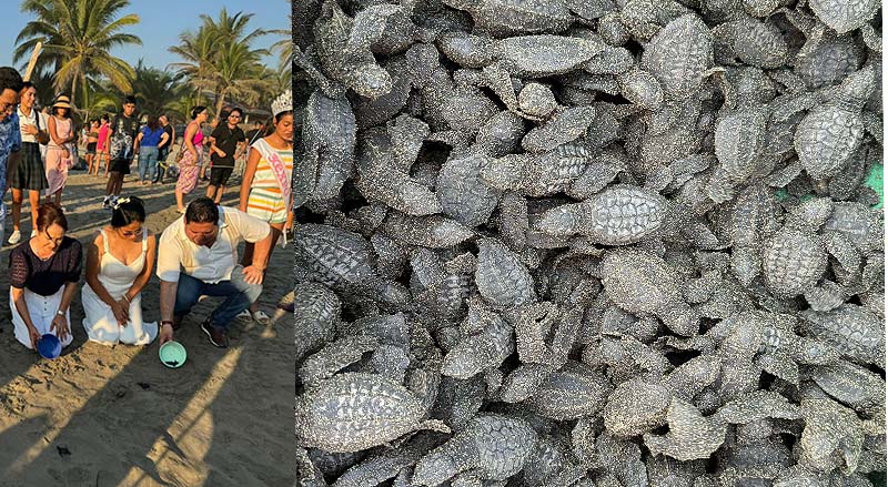 Lázaro Cárdenas, Michoacán; 27 de octubre del 2024.-La liberación de tortugas en Lázaro Cárdenas, Michoacán, es un evento emocionante que atrae a muchos entusiastas para ser parte de este fantástico evento.