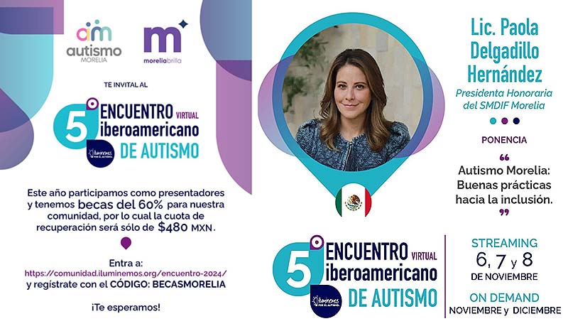 • La Presidenta Honoraria del DIF Morelia, Paola Delgadillo, ofrecerá una ponencia sobre inclusión de personas con TEA.