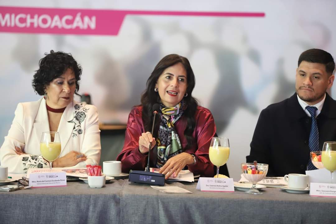 Durante el encuentro con medios de comunicación estuvo presente todo el gabinete educativo; Sergio Cedillo, rector de la Universidad de La Ciénega; Julieta Mendoza, directora del IMCED; Martín Samaguey, director del Tecnológico de Zamora; Liliana Carreño, directora del Tecnológico Tacámbaro; y Horacio Anaya, director de Educación Superior del Instituto de Educación Media Superior y Superior, en representación de su titular, Mariana Sosa; entre otros.