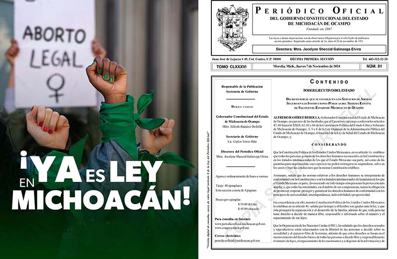 Michoacán publica decreto para el aborto seguro en el sector salud