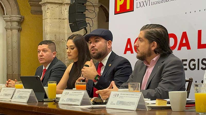 Morelia, Michoacán; 13 de noviembre del 2024.-Esta mañana diputados del Grupo Parlamentario del Partido de Trabajo (PT) en la 76 Leguislatura del Congreso del Estado, dieron a conocer lo que será su agenda legislativa donde plantean iniciativas a realizar en los próximos tres años de gestión.