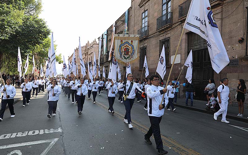 También participaron las moradoras y moradores de las Casas del Estudiante quienes estuvieron acompañados por rectora Yarabí Ávila González, de igual forma, se contó con la participación de las y los integrantes del Gabinete Legal, directoras y directores de escuelas, facultades e institutos, consejeras y consejeros universitarios y del estudiantado, acompañados por la reconocida Banda de Guerra de la UMSNH.