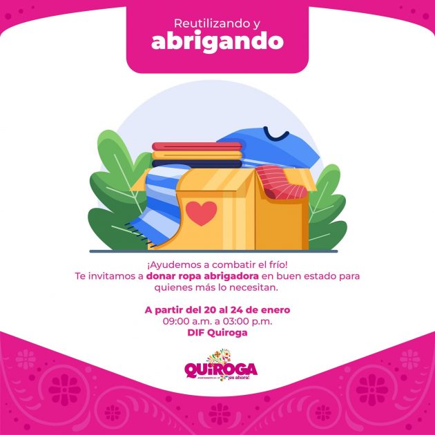 Quiroga, Michoacán, a 21 de enero 2025.–Para contribuir significativamente al bienestar de las personas en situación vulnerable, el Gobierno de Quiroga, a través de la Instancia de la Mujer junto con el Sistema para el Desarrollo Integral de la Familia (DIF) Municipal, invitan a la ciudadanía a sumarse a la campaña “Reutilizando y Abrigando”.