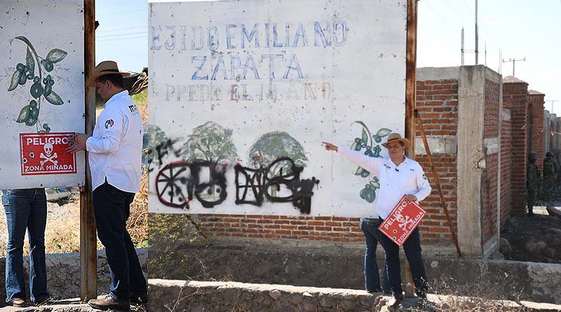 - Líder estatal coloca letreros donde advierte a la población el riesgo de transitar en zonas minadas.