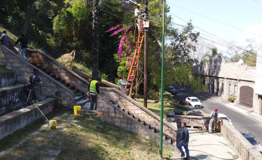 Entre las labores efectuadas se encuentran el lavado total de las escaleras, recolección de basura abandonada, barrido, poda de áreas verdes, así como la instalación de cinco nuevas luminarias y la rehabilitación de un circuito eléctrico que alimenta a diez lámparas más.