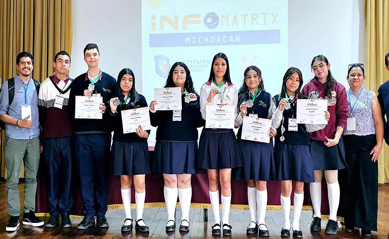 Morelia, Michoacán, 16 de marzo de 2025.- Estudiantes del Colegio de Estudios Científicos y Tecnológicos del Estado de Michoacán (Cecytem) obtuvieron siete medallas y seis acreditaciones en su participación en Infomatrix Michoacán 2025.