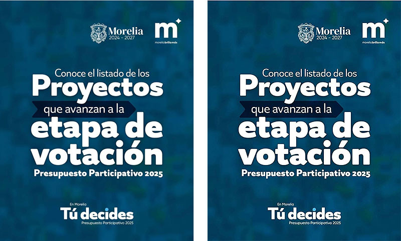 Estos proyectos se socializarán y la última semana del mes de marzo del presente pasarán a votación para que las y los morelianos voten y apoyen a sus favoritos. La lista de alrededor de 170 proyectos aprobados se podrán consultar en https://www.morelia.gob.mx/wp-content/uploads/2025/03/VIABILIDADES_positivas2025.pdf