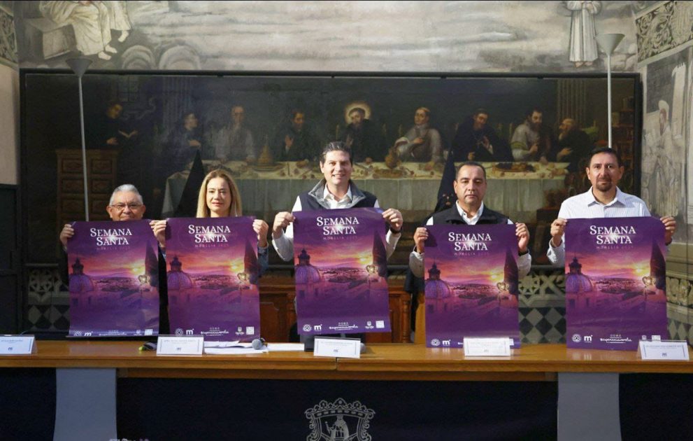 Morelia, Michoacán; 20 de marzo de 2025.- Con un llamado a que las y los ciudadanos se integren a las actividades de esta importante cartelera, el Gobierno de Morelia encabezado por el presidente municipal, Alfonso Martínez Alcázar, en compañía de las autoridades religiosas, anunció la oferta turística de Semana Santa.