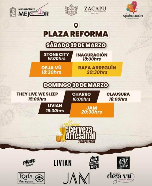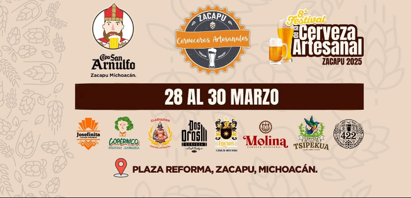 Los Ángeles, California.-La ciudad de Zacapu se prepara para la “8va Edición del Festival de la Cerveza Artesanal Zacapu 2025”, iniciará el viernes 28 y concluye el 30 de marzo del 2025 en la Plaza de la Reforma.