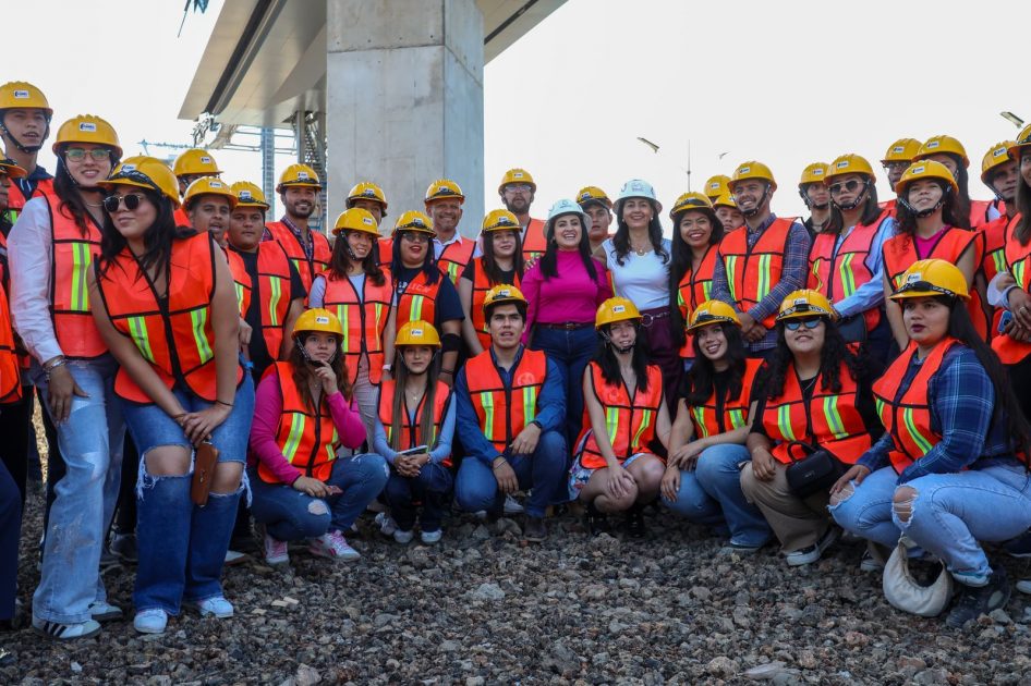 “Queremos que las juventudes conozcan de cerca cómo se construyen estas obras, que participen y sean parte del cambio” comentó la arquitecta a los alumnos de la Licenciatura en Gestión y Administración Pública, quienes conocieron tres de las seis estaciones del nuevo transporte.