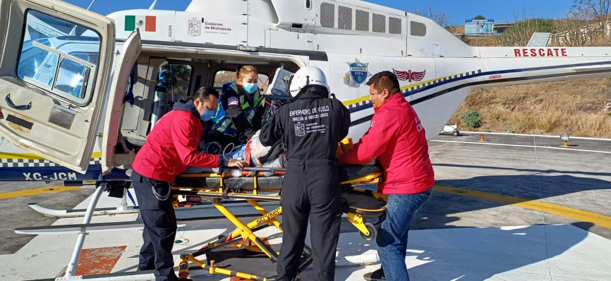 Morelia, Michoacán, 29 de marzo de 2025.- En atención inmediata a un accidente de tránsito ocurrido en la carretera Morelia-Pátzcuaro, los agentes de la Secretaría de Seguridad Pública (SSP), efectuaron dos traslados aéreos para la atención de pacientes de gravedad.