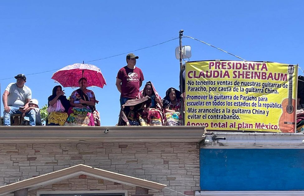 Desde las azoteas lucían lonas de apoyo, reclamo y solicitando ayuda. Unas del Crefal, otras de la lucha educativa de la CNTE, algunas más pidiendo apoyo para la comercialización de las guitarras de Paracho.