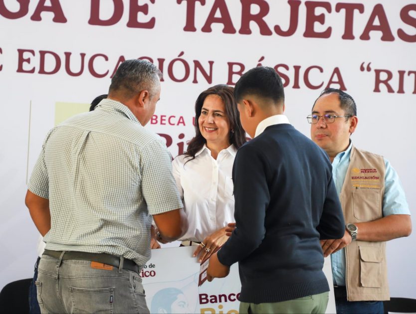 Morelia, Michoacán, 9 de abril de 2025.- Este viernes 11 de abril concluye la entrega de tarjetas de la Beca Rita Cetina para alumnos de secundaria, de acuerdo con el calendario que asignó la Secretaría de Bienestar, informó la secretaria de Educación del (SEE), Gaby Molina.
