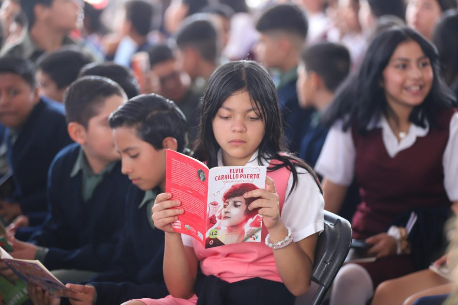 “El programa En Michoacán Se Lee nos permite compartir la historia de vida de grandes personajes con las y los jóvenes, como es la lideresa feminista Elvia Carrillo Puerto, quien bajo la influencia de Rita Cetina Gutiérrez, fue pieza clave para lograr que las mujeres votaran en nuestro país. En las escuelas de Michoacán se está leyendo el libro “Elvia Carrillo Puerto”, de Damiana Leyva Loría, de la colección Vientos del Pueblo, editado por el FCE y que es parte de las lecturas del Plan de Fomento a la Lectura”, recordó la secretaria de Educación.