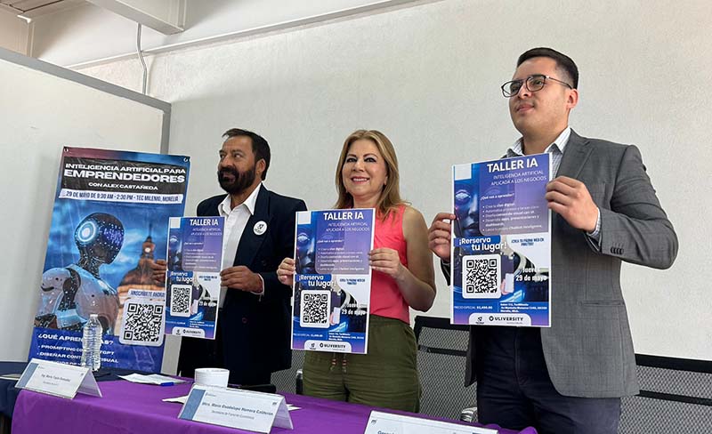 Morelia, Michoacán; 19 de mayo del 2025.-El próximo 29 de mayo se realizará el curso Inteligencia Artificial para emprendedores con un cupo limitado para 400 participantes y se darán solo 100 becas de apoyo por 2 mil 500 pesos.