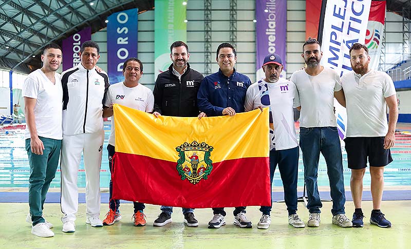 Morelia, Mich., a 29 de mayo de 2025.-Con la ilusión de hacer brillar a Morelia una vez más, el equipo de natación convencional y discapacidad del Instituto Municipal de Cultura Física y Deporte (IMCUFIDE) fue abanderado por el Secretario del Ayuntamiento de Morelia, Yankel Benítez Silva, rumbo a su participación en tres competencias de gran relevancia a nivel nacional e internacional, representando orgullosamente a nuestra ciudad y a México.