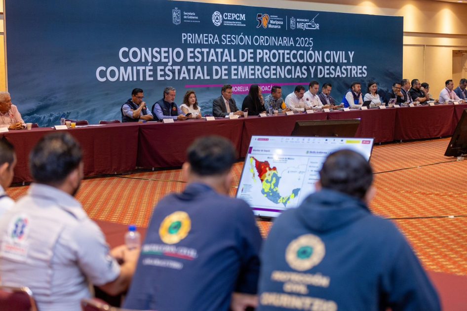 Morelia, Michoacán, 10 de junio de 2025..- Con el objetivo de fortalecer la coordinación institucional y la capacidad de respuesta ante fenómenos naturales, la Secretaría de Gobierno, a través de la Coordinación Estatal de Protección Civil, encabezó la Primera Sesión Ordinaria del Consejo Estatal de Protección Civil y del Comité Estatal de Emergencias y Desastres.