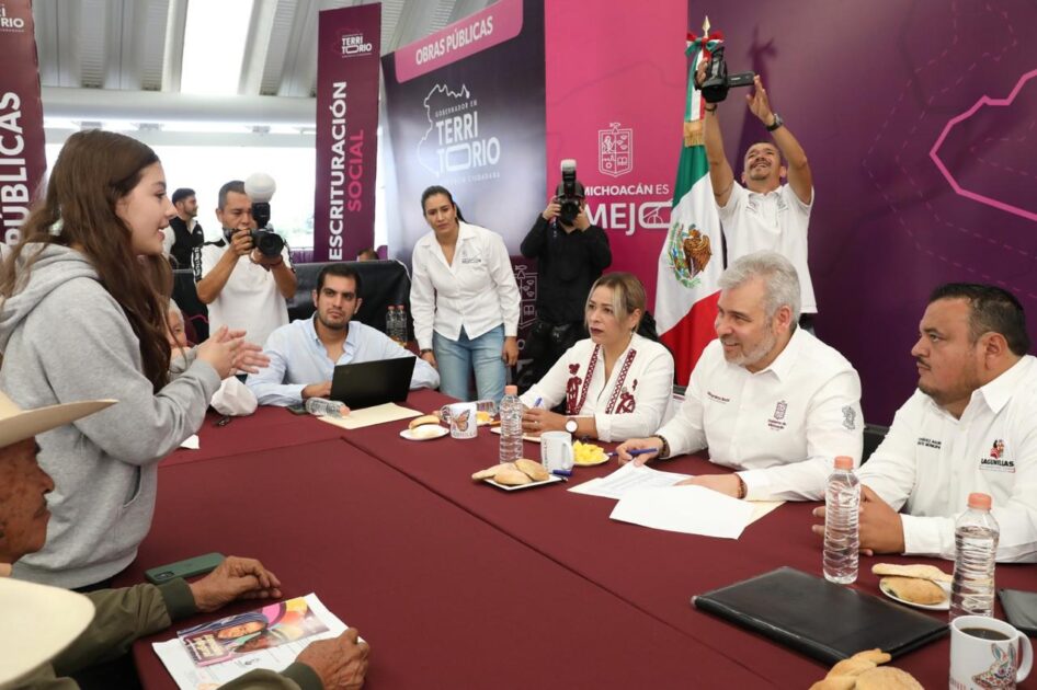 Lagunillas, Michoacán, 26 de julio de 2025.- Como parte de su política de atención directa a la población michoacana, el gobernador Alfredo Ramírez Bedolla llevó la audiencia pública Gobernador en Territorio al municipio de Lagunillas, donde recibió solicitudes de la población en materia de salud, obras públicas, desarrollo urbano, campo, entre otros temas.