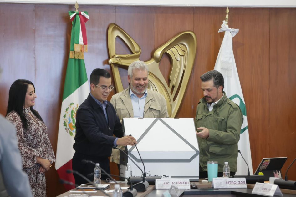 Ciudad de México, 24 de agosto de 2025.- El gobernador Alfredo Ramírez Bedolla entregó al director general del IMSS, Zoé Robledo Aburto, 40 mil firmas ciudadanas recolectadas en favor de la construcción del nuevo Hospital General Regional en Villas del Pedregal.