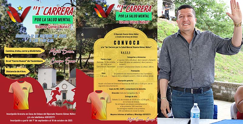 En ese sentido hizo una invitación a la población del Distrito XIX a participar en la Primera Carrera por la Salud Mental, que se desarrollará el 12 de octubre en el Cerro Hueco del municipio de Tacámbaro.