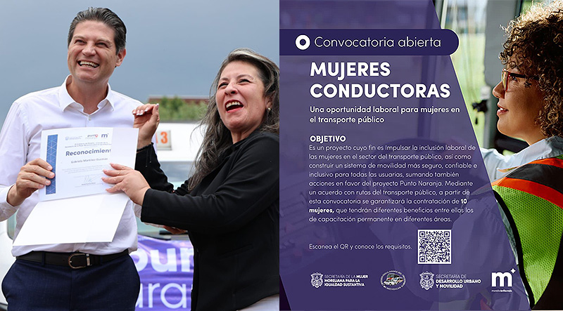 Morelia, Michoacán, a 11 de septiembre de 2025.-El Ayuntamiento de Morelia, a través de la Secretaría de la Mujer Moreliana para la Igualdad Sustantiva (SEMMUJERIS) y la Secretaría de Desarrollo Urbano y Movilidad (SEDUM), anunció la apertura de la convocatoria del programa “Mujeres al volante”, con el objetivo de fomentar la participación de las mujeres en el servicio de transporte público de la ciudad.