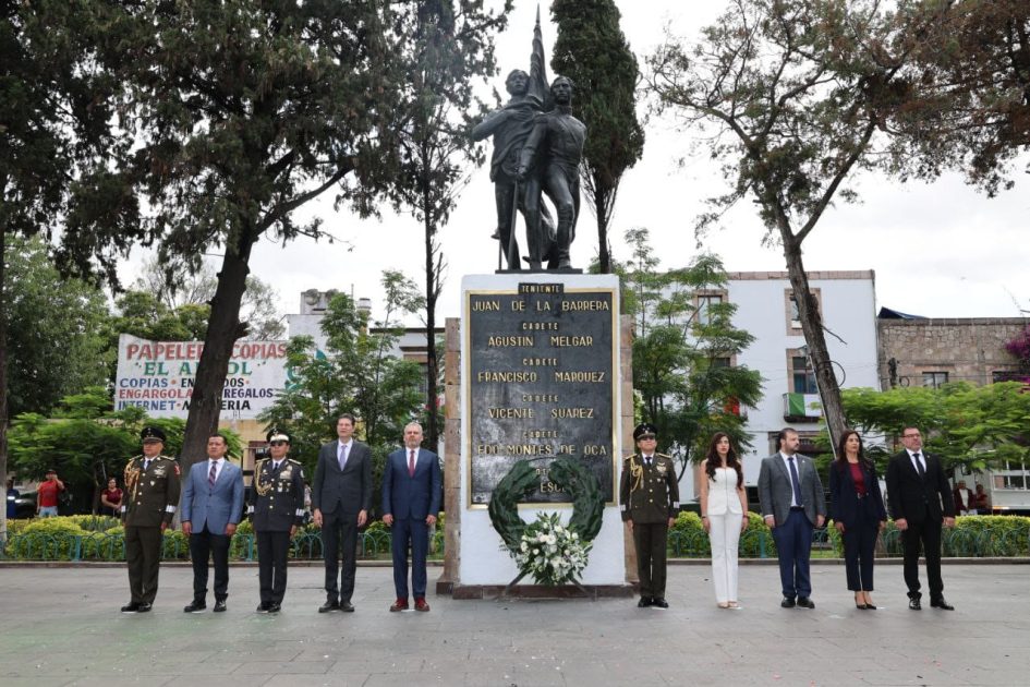 Posteriormente, los integrantes del presidium, entre ellos, el gobernador, Alfredo Ramírez Bedolla; la Diputada Giulianna Bugarini Torres, presidenta de la Mesa Directiva del Congreso del Estado; el Coordinador Estatal de la Guardia Nacional, General de Brigada Roberto Eduardo Molina García; el Secretario de Gobierno, Raúl Zepeda Villaseñor; el Fiscal General del Estado, Carlos Torres Piña; realizaron guardia de honor en el monumento a los Niños Héroes, como símbolo de respeto y gratitud hacia su legado.