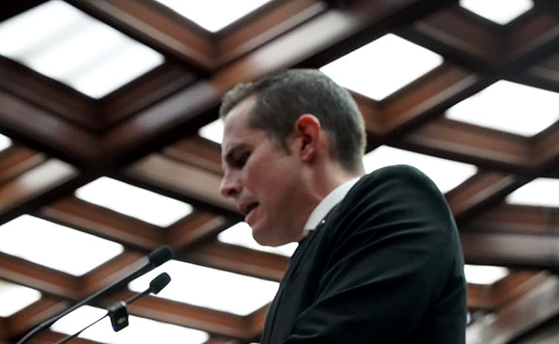 Previo a su iniciar con su discurso, el diputado independiente solicitó un minuto de silencio en memoria del policía municipal de Uruapan, Brígido Guzmán, quien falleciera en cumplimiento de su deber, “por manos de la delincuencia organizada”.