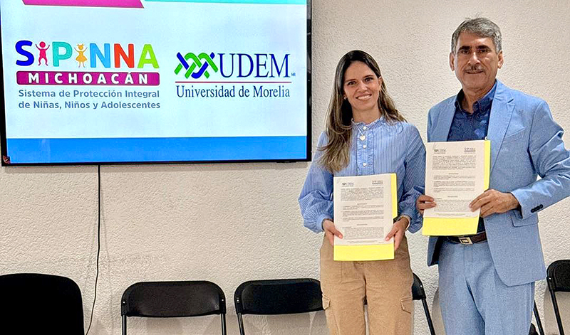 El acuerdo fue suscrito por el rector de la institución, Mtro. Pedro Chávez Villa, y la secretaria ejecutiva de SIPINNA Michoacán, Mtra. Daniela De Los Santos Torres, quien subrayó que este instrumento permitirá impulsar proyectos académicos, facilitar el uso de espacios e instalaciones, así como fortalecer la difusión de actividades conjuntas.