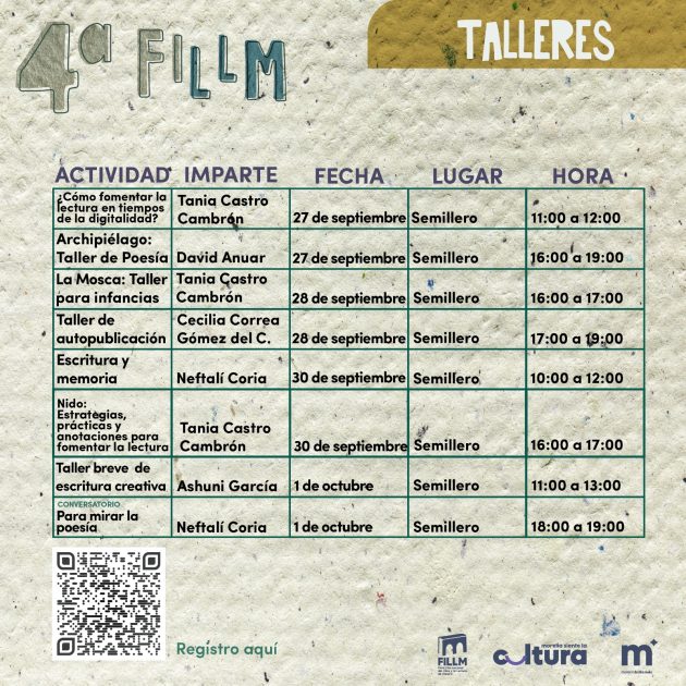 • El 28 de septiembre continuará “La mosca: taller para las infancias”, por Tania Castro Cambrón, de 16:00 a 17:00 horas.