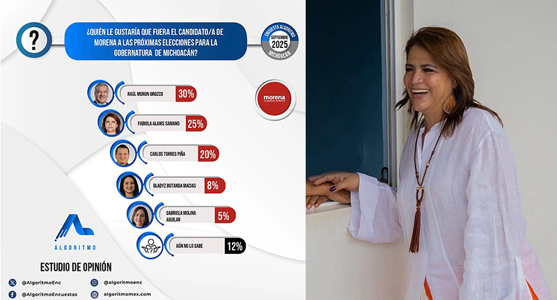 Según Algoritmo, el 25 por ciento de las personas encuestadas respaldan a Fabiola Alanís para que encabece la candidatura al gobierno estatal en 2027, en tanto que, el 30 por ciento de los encuestados se inclina a favor del senador Raúl Morón Orozco; sin embargo, cabe destacar que, mientras Fabiola Alanís mantuvo ese porcentaje entre agosto y septiembre, Raúl Morón, por el contrario, perdió un punto en las preferencias.