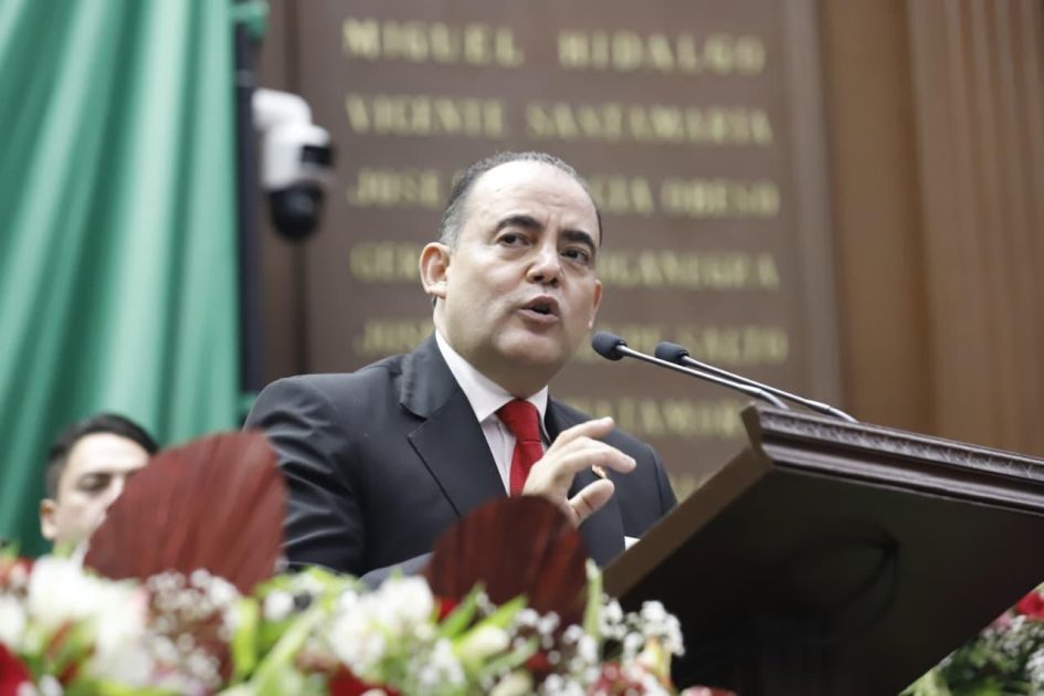 Lo anterior al tomar la palabra durante la entrega del Cuarto Informe de Gobierno de Michoacán por parte de Alfredo Ramírez Bedolla. Evento que se realiza en la sede del Poder Legislativo.