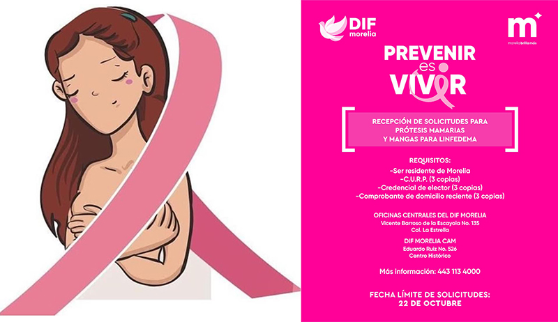 El DIF Morelia recuerda que la prevención es la herramienta más poderosa: detectado en etapas tempranas, el cáncer de mama tiene más del 90% de probabilidades de supervivencia. La invitación es a realizar revisiones periódicas y aprovechar los servicios gratuitos que se ofrecen en este mes. Para mayor información, comunicarse al teléfono: 443 113 4000.