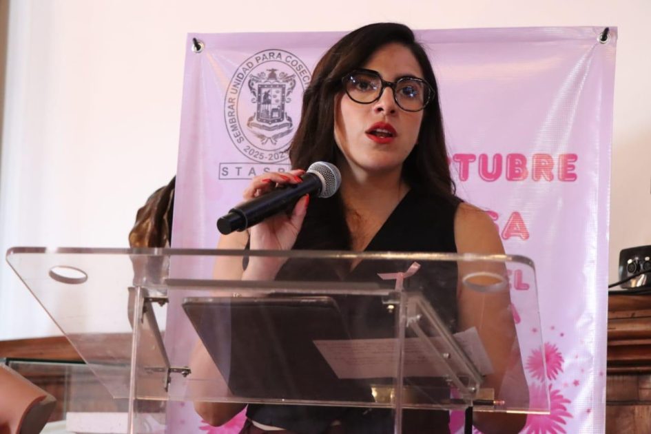 En el marco del mes rosa y la lucha contra el cáncer de mama, la diputada Giulianna Bugarini Torres, presidenta de la Mesa Directivas del Congreso del Estado, destacó la importancias de hablar de la lucha contra el cáncer de mama en estos espacios a fin de visibilizar este problema de salud y generar una cultura de prevención, además en donde las mujeres aprendan como autoexplorarse y en conjunto, compartir experiencias.