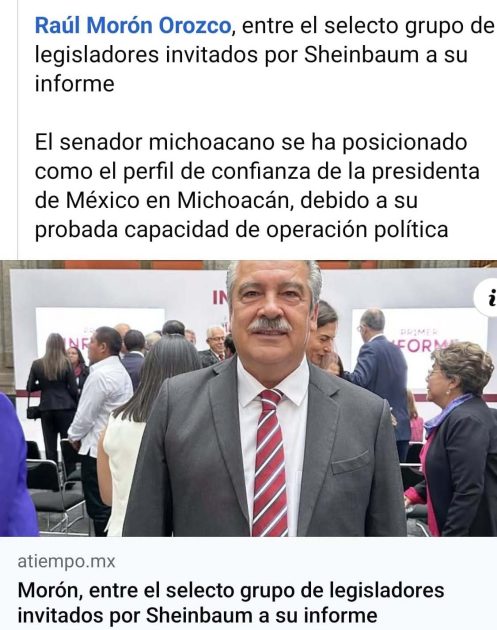 Por otra parte el recorrido que la dirección nacional de Morena encabezada por Luisa María Alcalde Lujan a todas las entidades federativas del país, no sólo tienen el papel de informar y promover lel cumplimiento de los acuerdos del VIII Congreso Nacional Extraordinario de Morena del 20 de julio, sino tambien a poner orden a las cuestiones internas de Morena, promover el trabajo y unidad política; en el caso particular de Michoacán disminuir la natural tensión por la gubernatura del estado en el 2027 entre los dos principales equipos internos encabezados por el gobernador Bedolla y Senador Morón; de igual manera cancelar definitivamente la truculenta intención de que el Congreso del Estado legislara para que hubiera gobernadora a fuerzas en Michoacán en las elecciones del 2027.