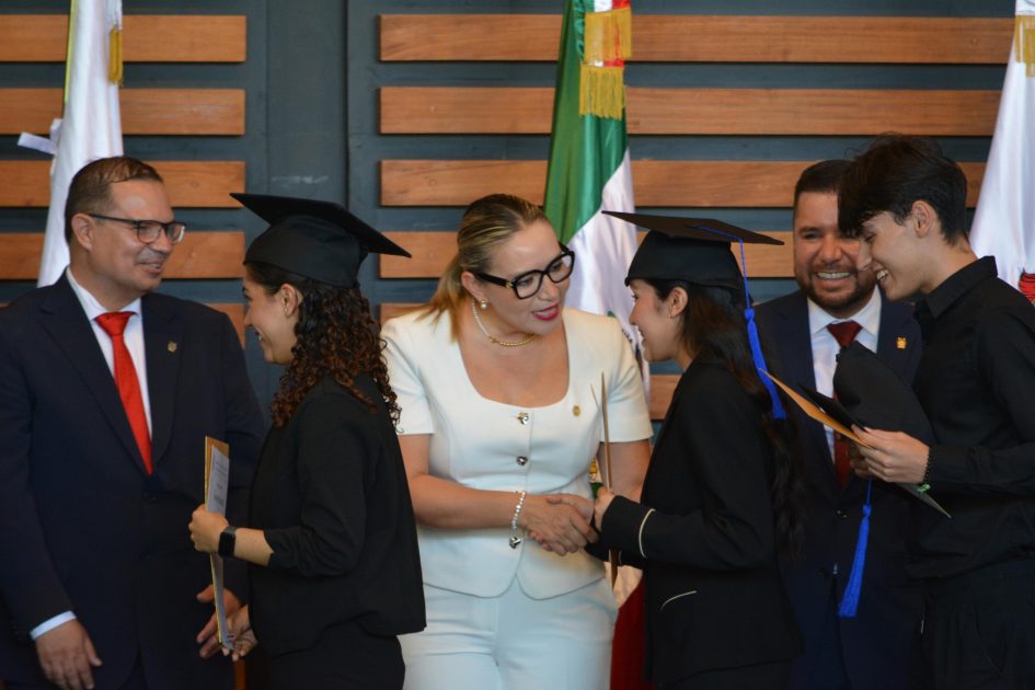 A nombre de los estudiantes, Víctor Jesús Tapia Venegas, comentó que, hoy las y los jóvenes ven reflejado ese esfuerzo realizado, y aseguró que todo este trabajo no ha sido un esfuerzo individual sino un logro alcanzado en conjunto con sus madres, padres, familias, amigos y profesores. Agradeció a la rectora Yarabí Ávila por impulsar este proyecto “no tengo duda alguna que las generaciones que ya están en el camino, están entusiasmadas por desarrollar un excelente desempeño y lograr lo que, por primera vez, hoy estamos celebrando”.